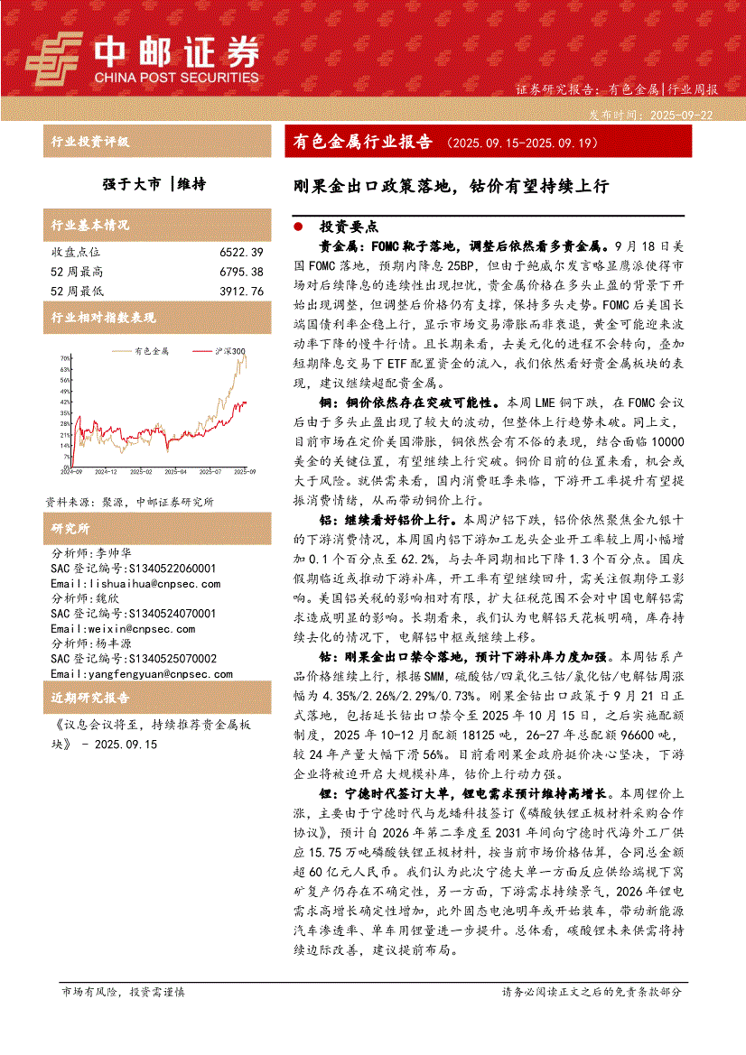 有色金属行业:中邮证券-有色金属行业报告:刚果金出口政策落地,钴价有望持续上行-250922