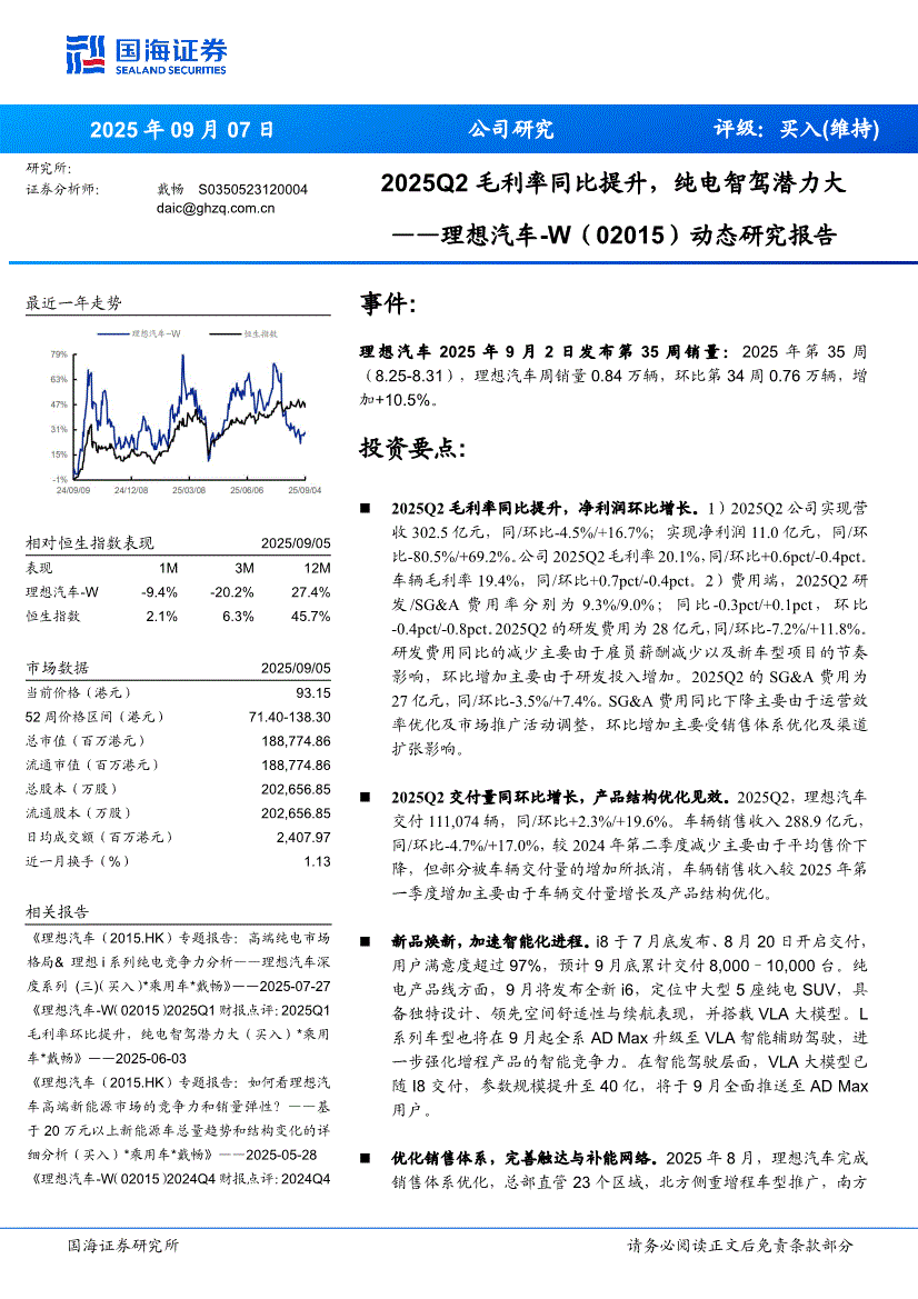 理想汽车~W:国海证券-理想汽车~W-2015.HK-动态研究报告:2025Q2毛利率同比提升,纯电智驾潜力大-250907