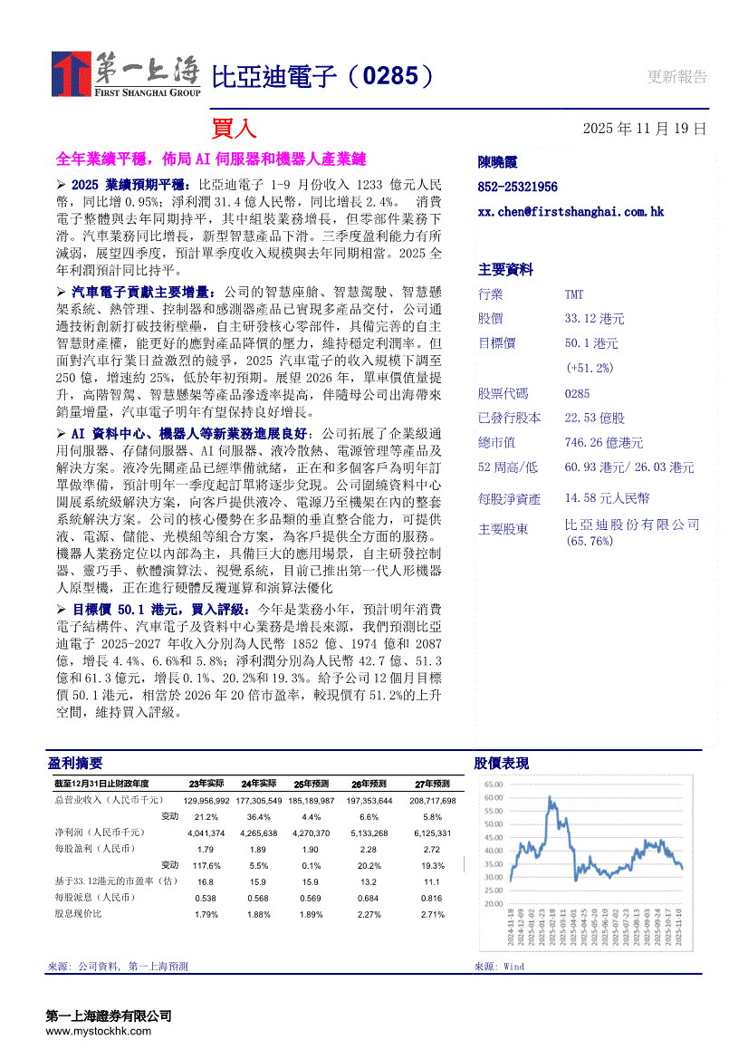 比亚迪电子:第一上海-比亚迪电子-0285.HK-全年业绩平稳,布局AI伺服器和机器人产业链-251119