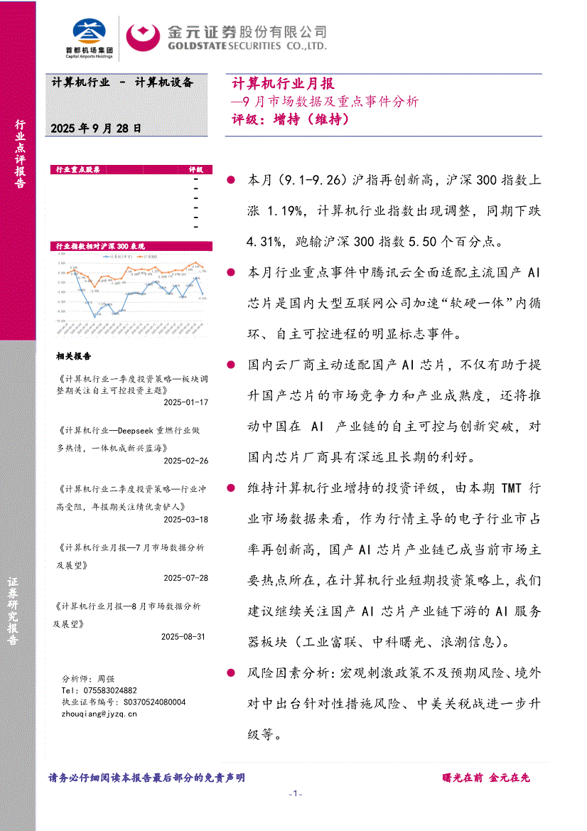 计算机行业:金元证券-计算机行业月报:9月市场数据及重点事件分析-250928