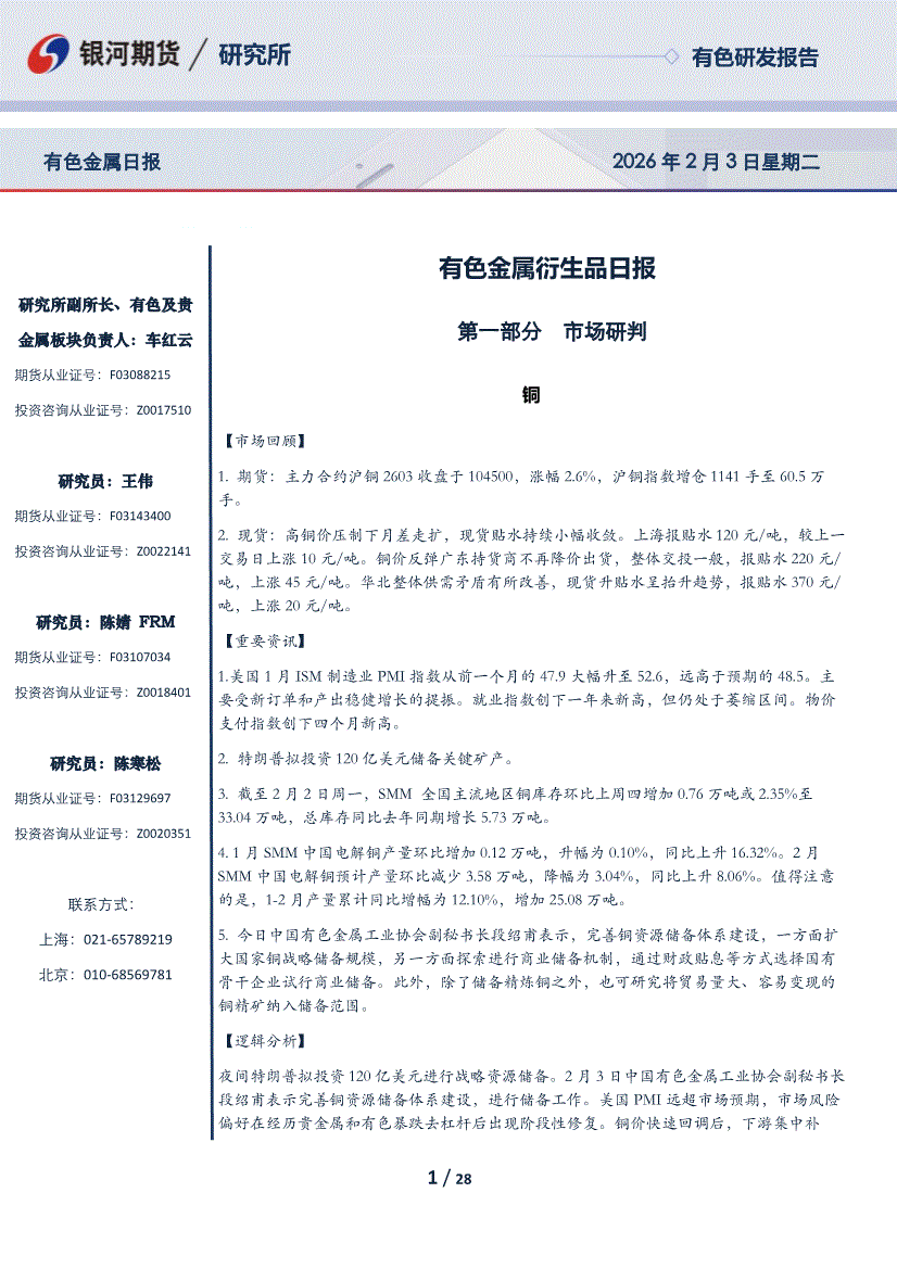 银河期货-有色金属衍生品日报-260203