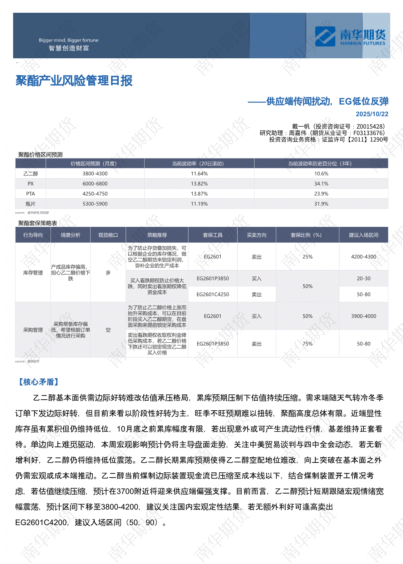 南华期货-聚酯产业风险管理日报:供应端传闻扰动,EG低位反弹-251022