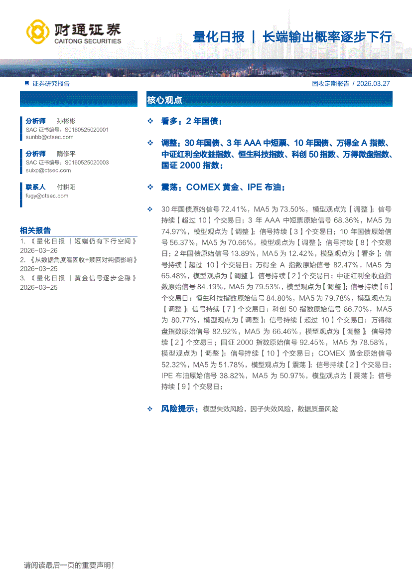 财通证券-量化日报|长端输出概率逐步下行-260327