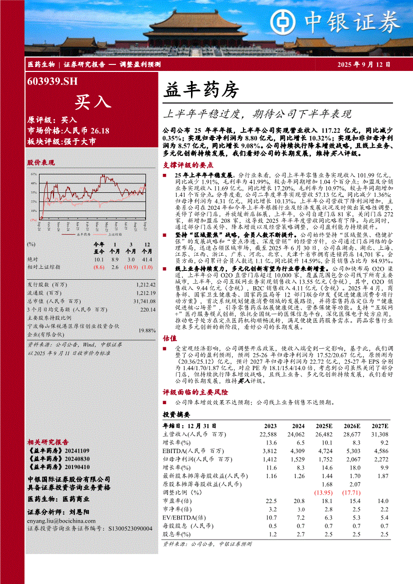 益丰药房:中银国际-益丰药房-603939-上半年平稳过度,期待公司下半年表现-250912