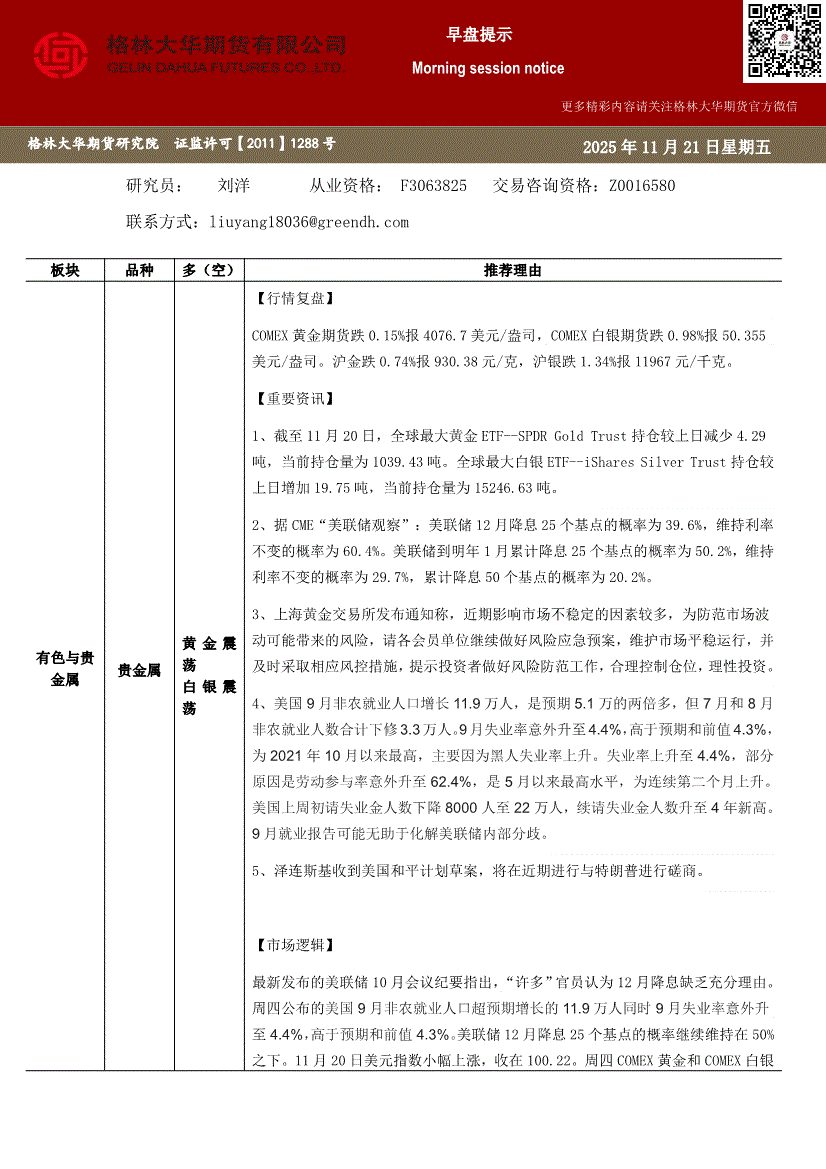 格林大华期货-宏观国债周报:债市延续横盘震荡-251121