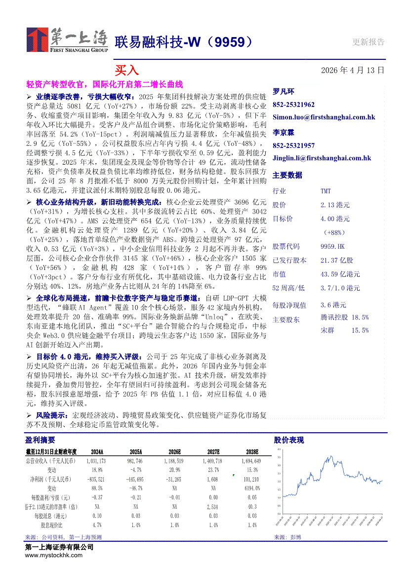 联易融科技~W:第一上海-联易融科技~W-9959.HK-轻资产转型收官,国际化开启第二增长曲线-260413