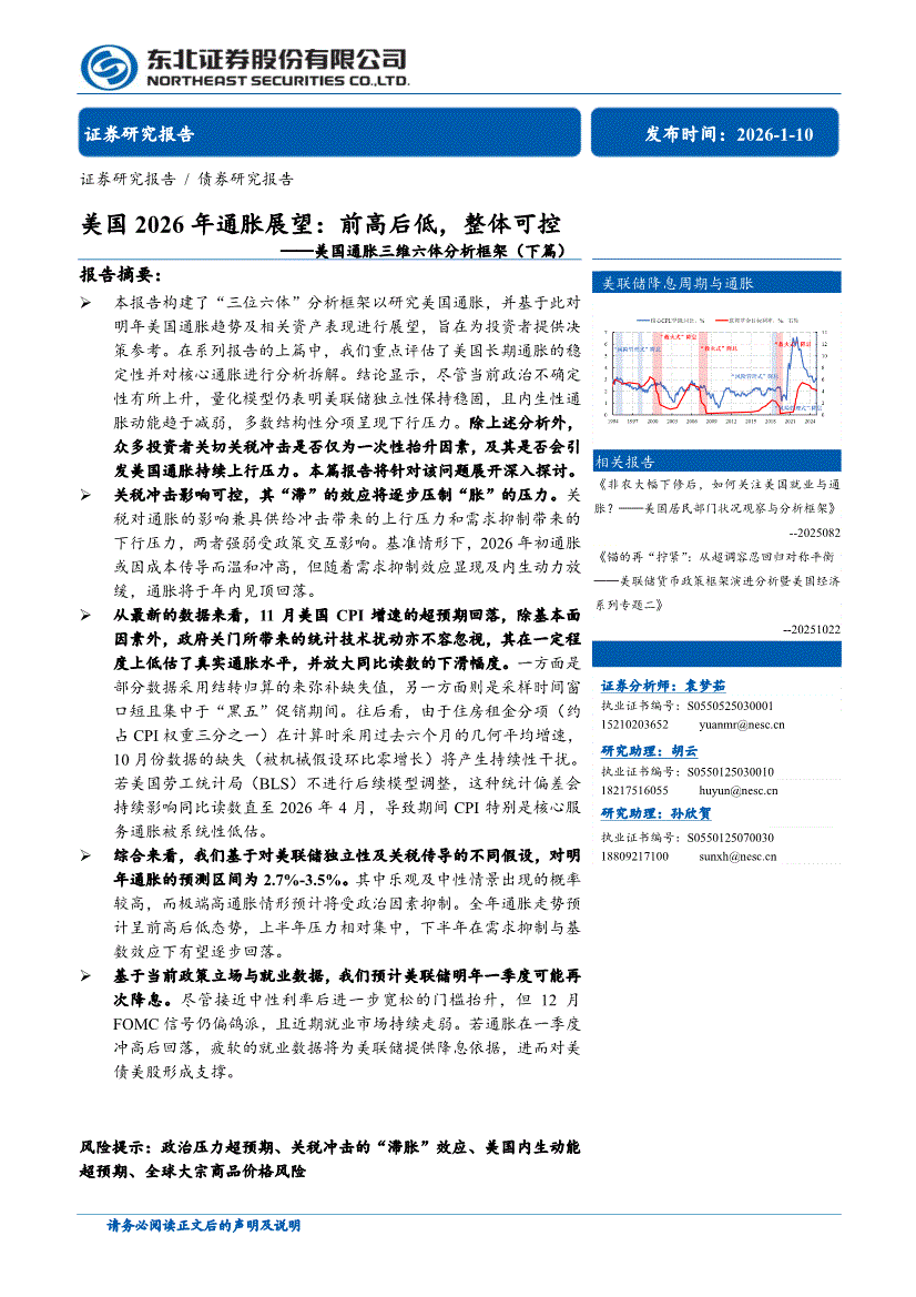 东北证券-美国通胀三维六体分析框架(下篇):美国2026年通胀展望,前高后低,整体可控-260110