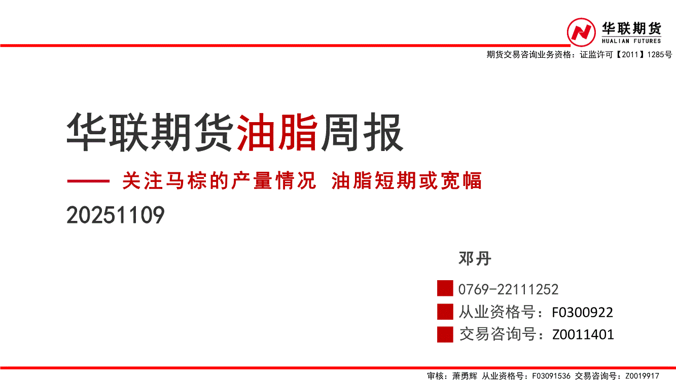 华联期货-油脂周报:关注马棕的产量情况,油脂短期或宽幅-251109