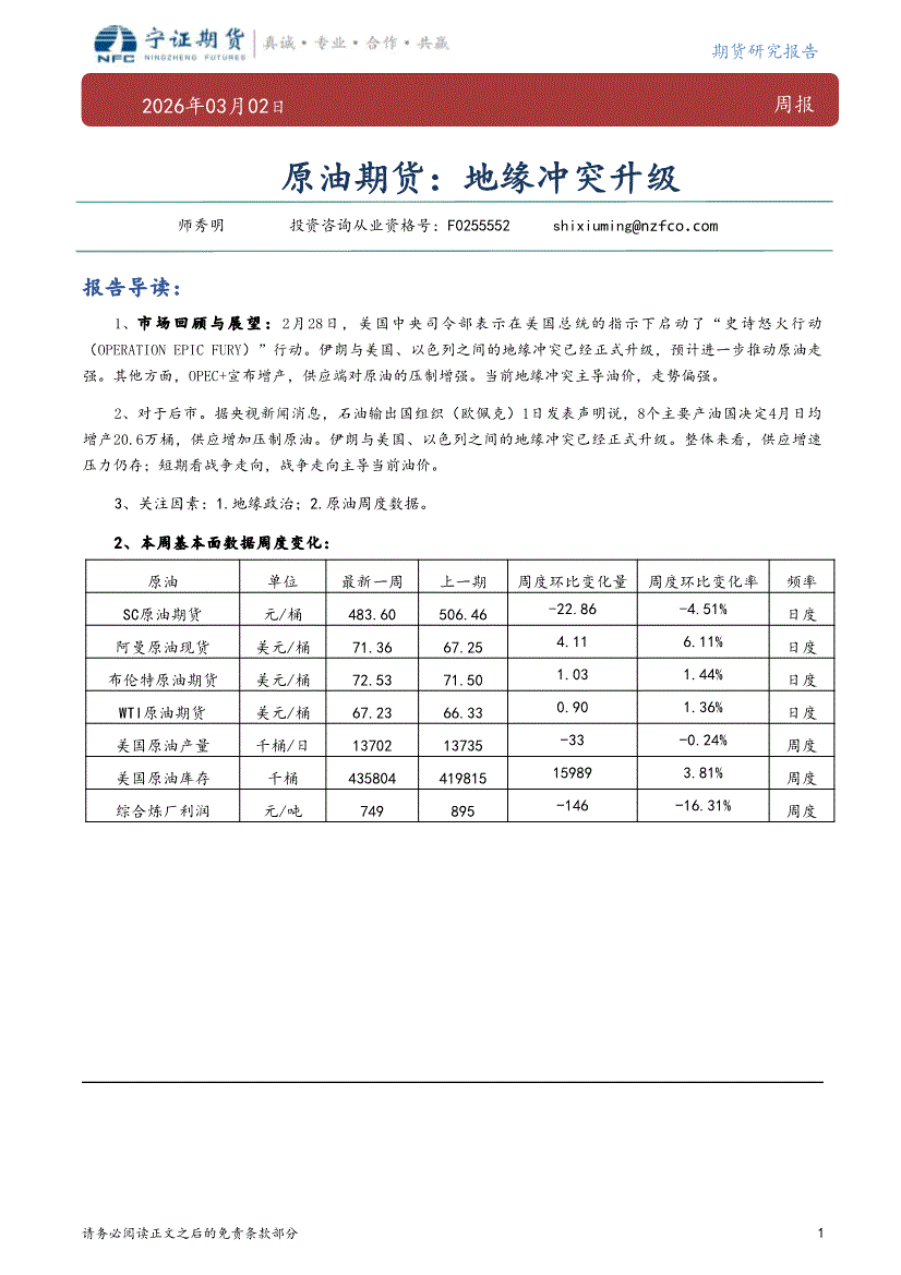 宁证期货-原油期货周报:地缘冲突升级-260302
