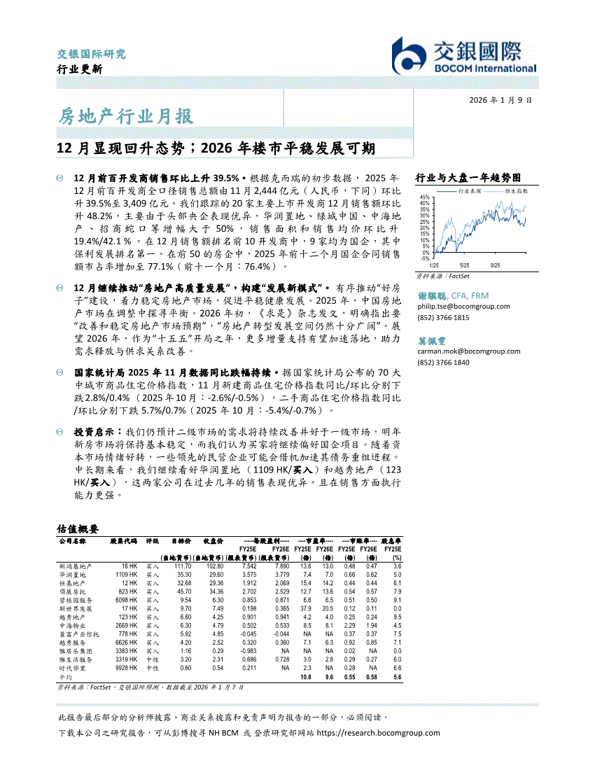 房地产行业:交银国际-房地产行业月报:12月显现回升态势;2026年楼市平稳发展可期-260109