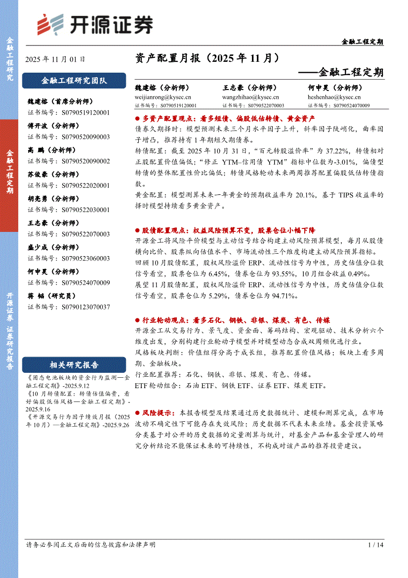 开源证券-金融工程定期:资产配置月报(2025年11月)-251101