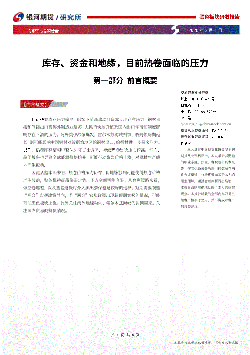 银河期货-钢材专题报告:库存、资金和地缘,目前热卷面临的压力-260304