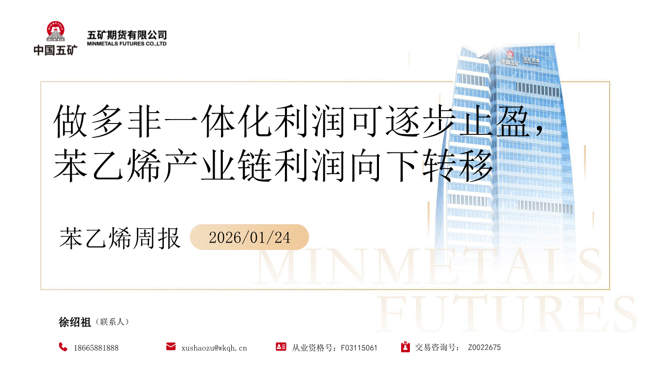 五矿期货-苯乙烯周报:做多非一体化利润可逐步止盈,苯乙烯产业链利润向下转移-260124