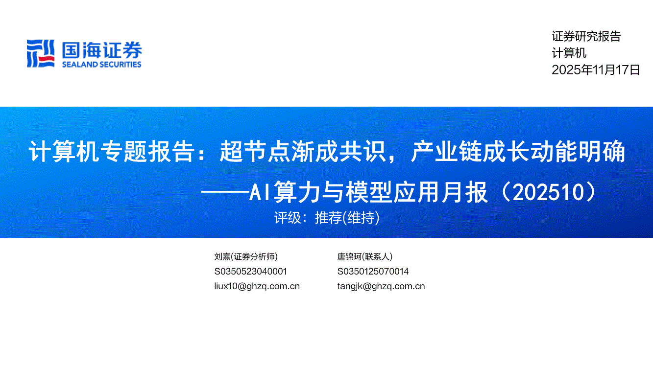 计算机行业:国海证券-计算机行业AI算力与模型应用月报:超节点渐成共识,产业链成长动能明确-251117