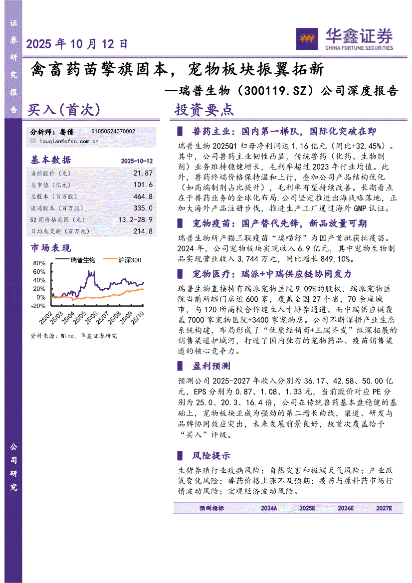 瑞普生物:华鑫证券-瑞普生物-300119-公司深度报告:禽畜药苗擎旗固本,宠物板块振翼拓新-251012