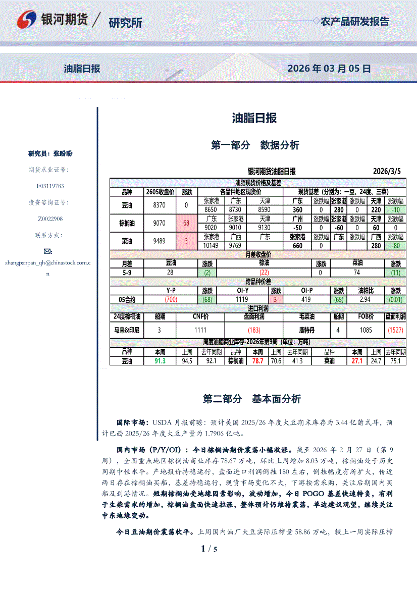 银河期货-油脂3月报:油脂逐渐回归基本面,短期油脂或震荡偏弱运行-260227