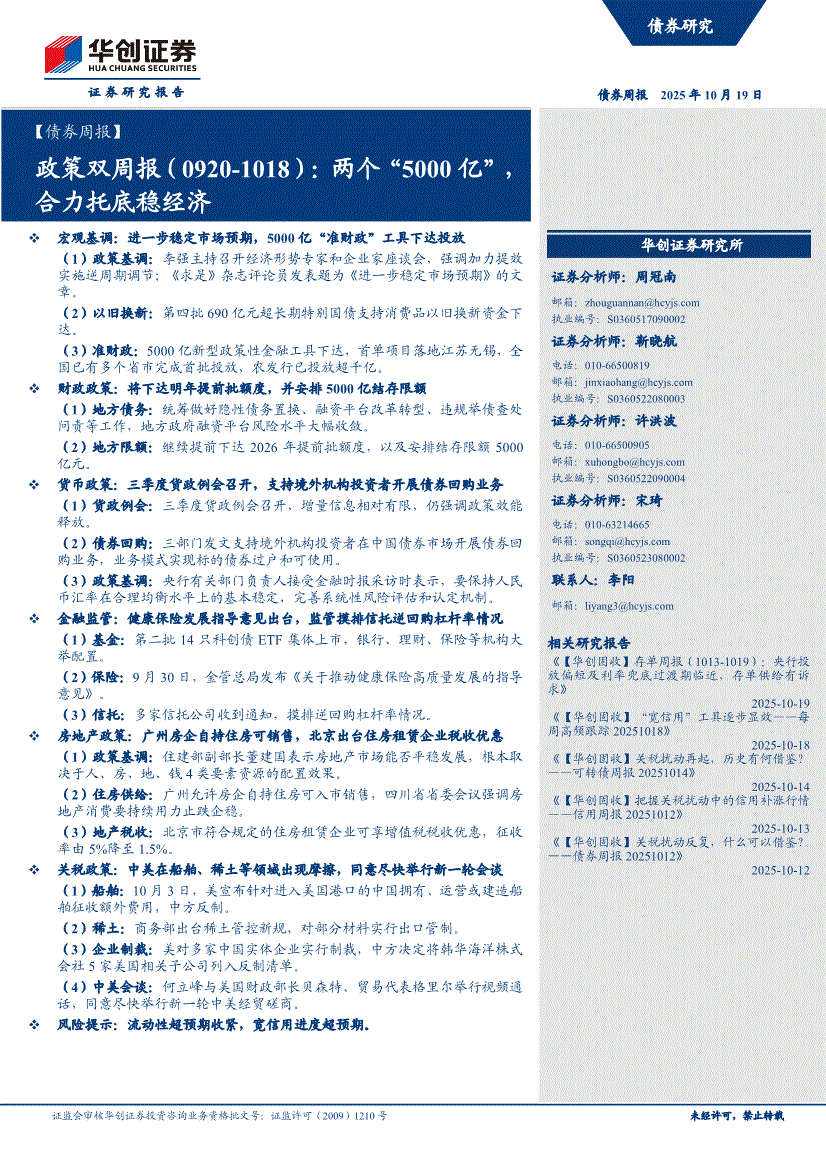 华创证券-【债券周报】政策双周报:两个“5000亿”,合力托底稳经济-251019