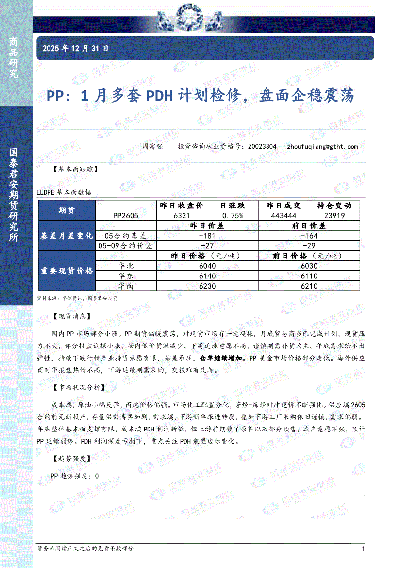国泰君安期货-PP:1月多套PDH计划检修,盘面企稳震荡-251231