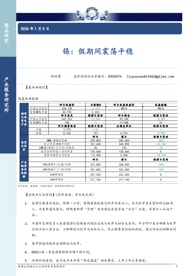 国泰君安期货-黄金:避险情绪回升,白银,新高待破-260107