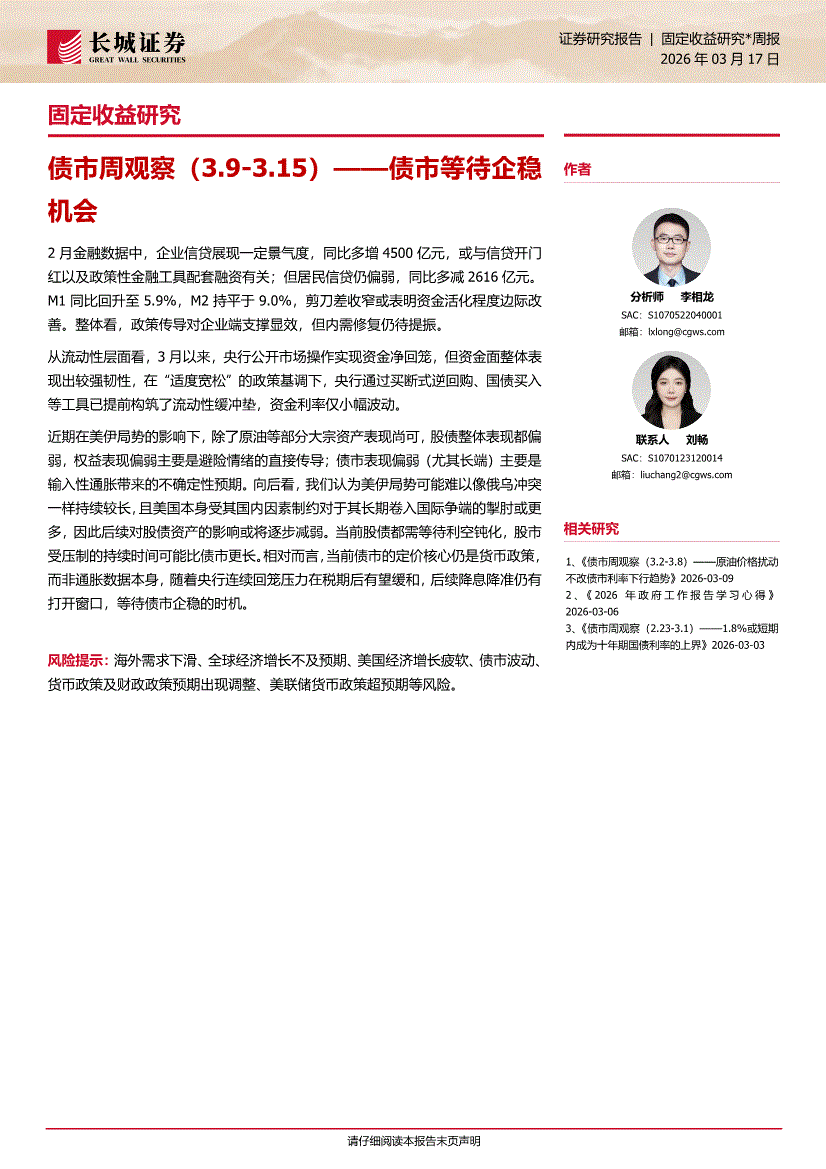 长城证券-债市周观察:债市等待企稳机会-260317
