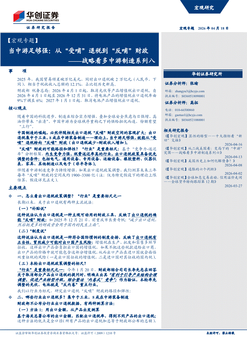 华创证券-【宏观专题】当中游足够强:从“受哺”退税到“反哺”财政——战略看多中游制造系列八-260418