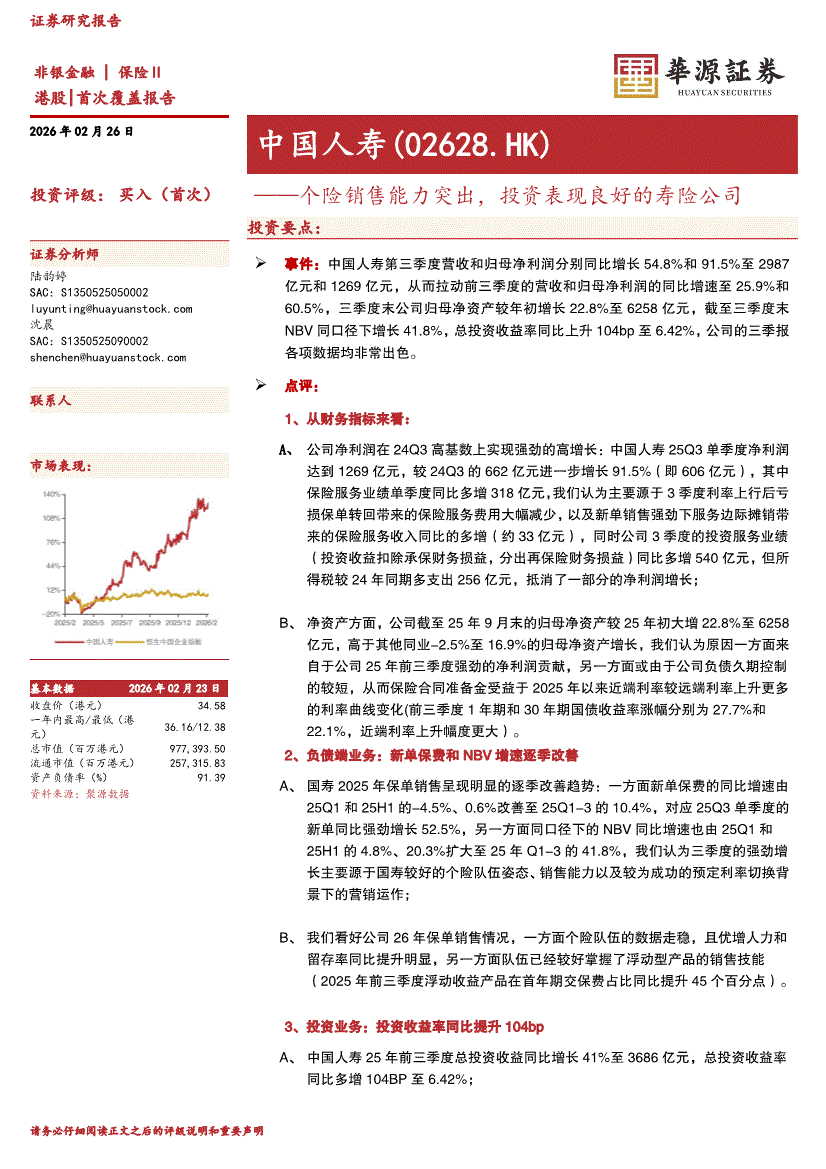 中国人寿:华源证券-中国人寿-2628.HK-个险销售能力突出,投资表现良好的寿险公司-260226