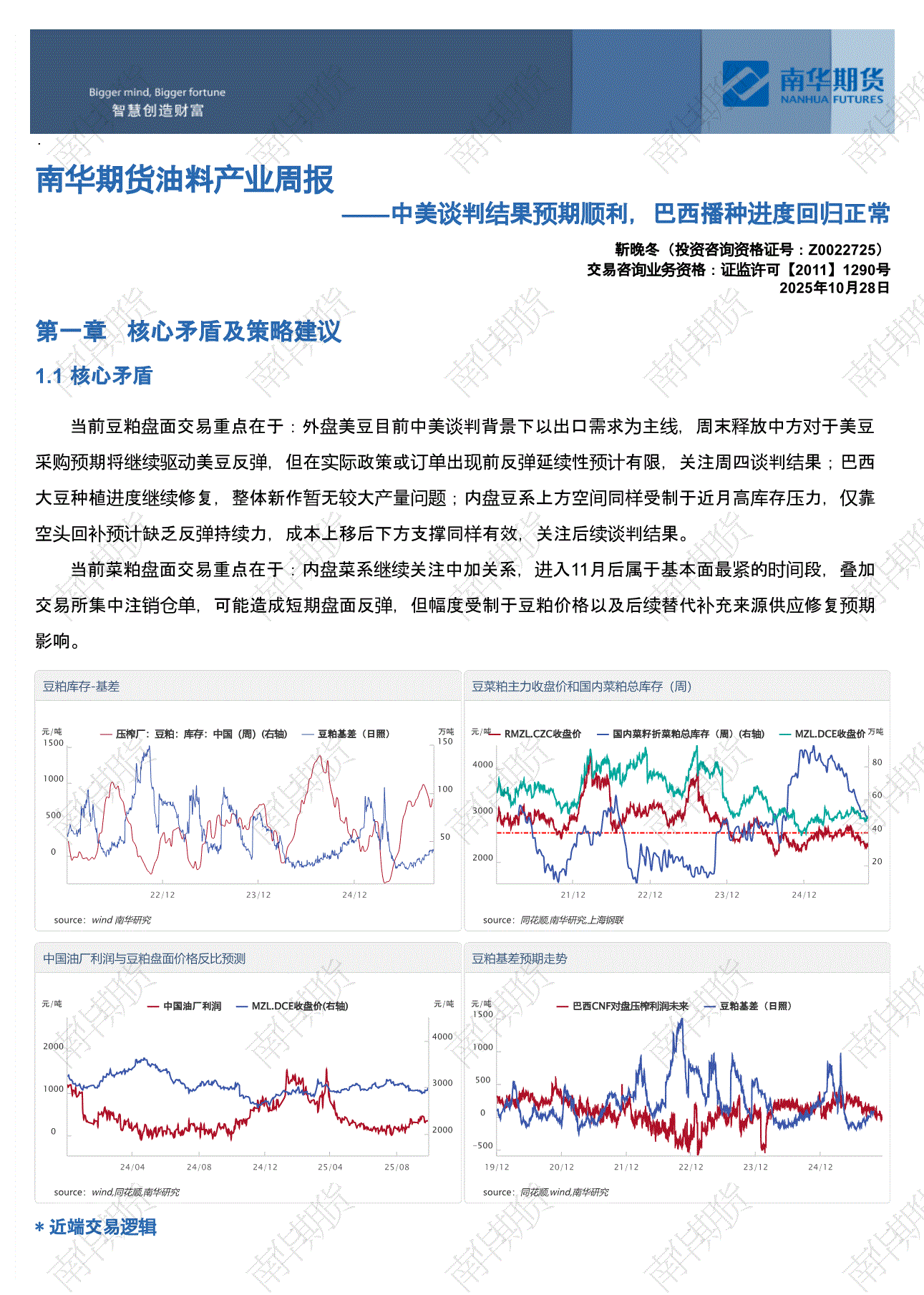 南华期货-油料产业周报:中美谈判结果预期顺利,巴西播种进度回归正常-251028