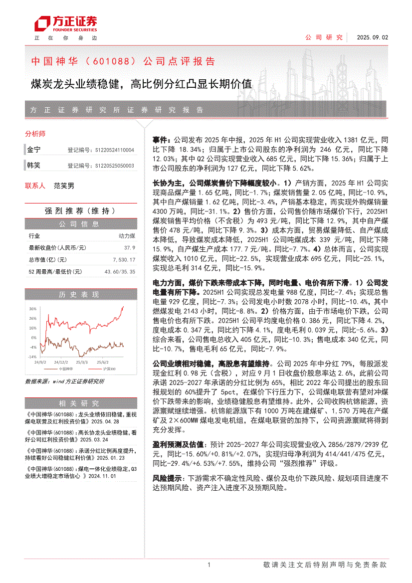 中国神华:方正证券-中国神华-601088-公司点评报告:煤炭龙头业绩稳健,高比例分红凸显长期价值-250902