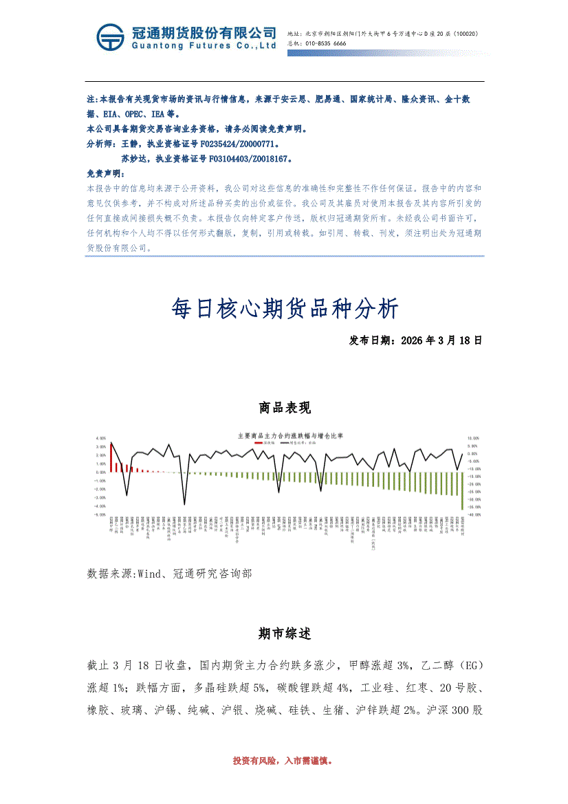 冠通期货-每日核心期货品种分析-260318