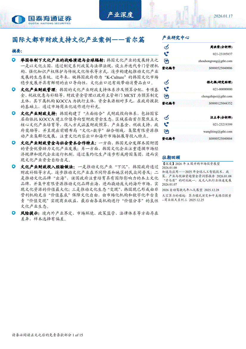 国泰海通证券-产业深度:国际大都市财政支持文化产业案例——首尔篇-260117