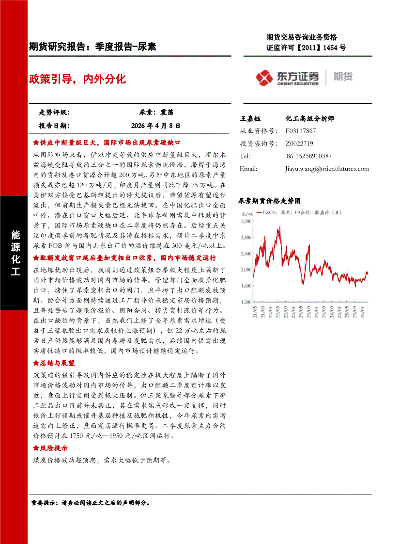 东证期货-尿素季度报告:政策引导,内外分化-260408