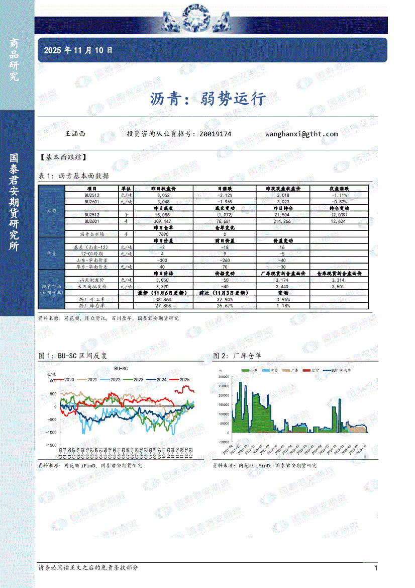国泰君安期货-沥青:现货不振,偏弱震荡-251113