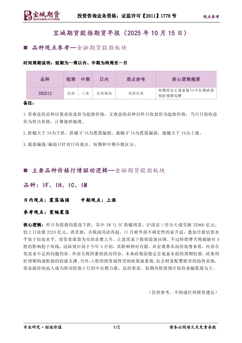 宝城期货-股指衍生品周报:特朗普突发关税威胁,短线扰动股指-251013