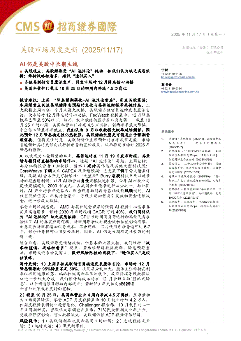 招商证券(香港)-美股市场周度更新:AI仍是美股中长期主线-251117