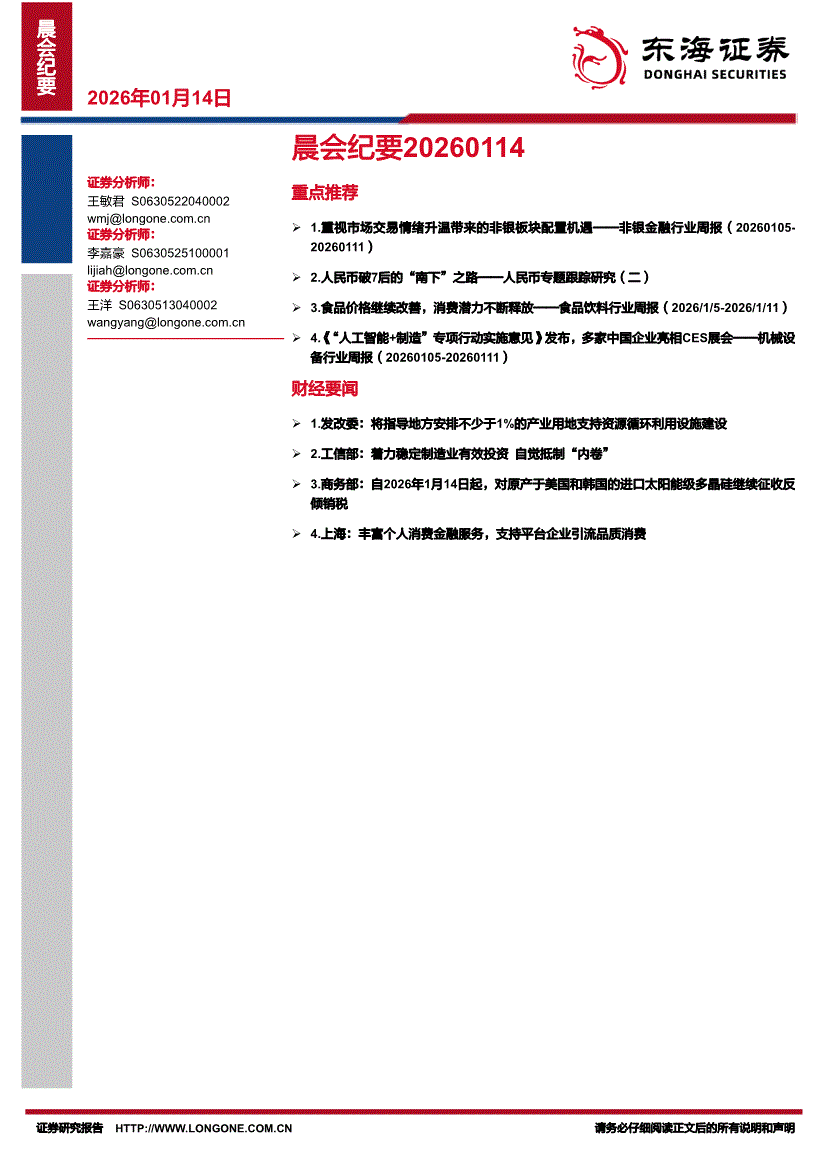 东海证券-晨会纪要-260114
