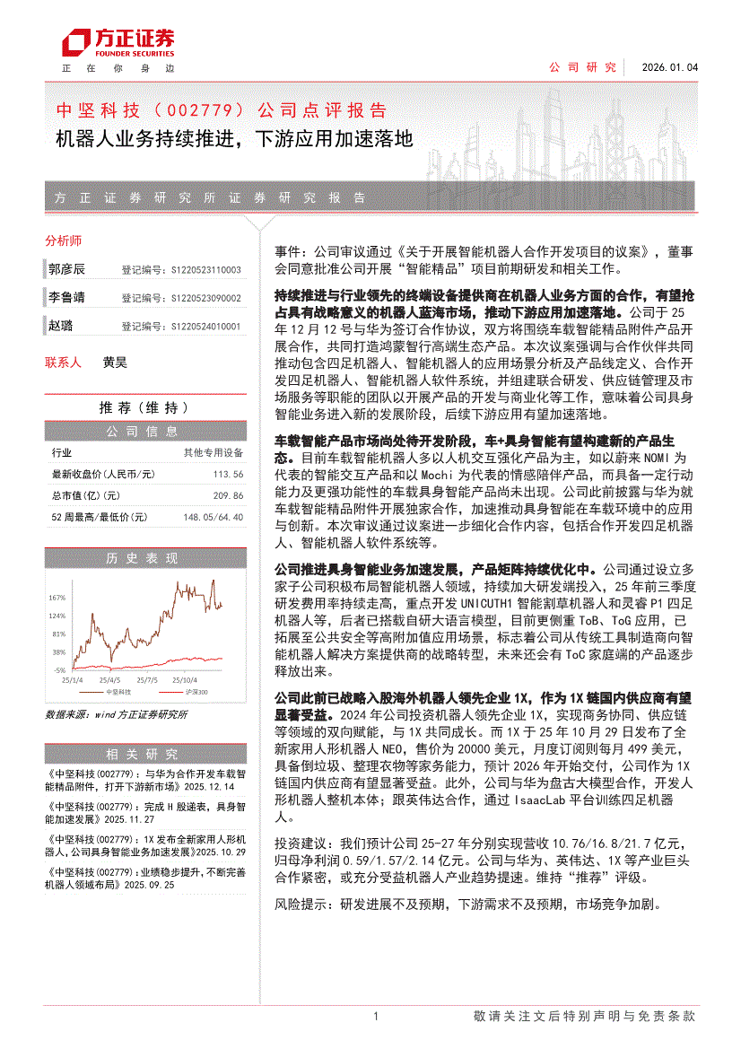 中坚科技:方正证券-中坚科技-002779-公司点评报告:机器人业务持续推进,下游应用加速落地-260104