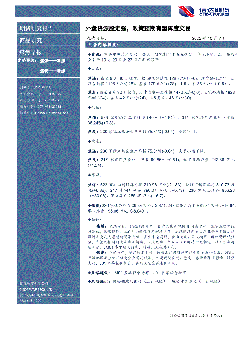 信达期货-煤焦早报:宏观预期回暖,供给偏紧,煤焦反弹-251020