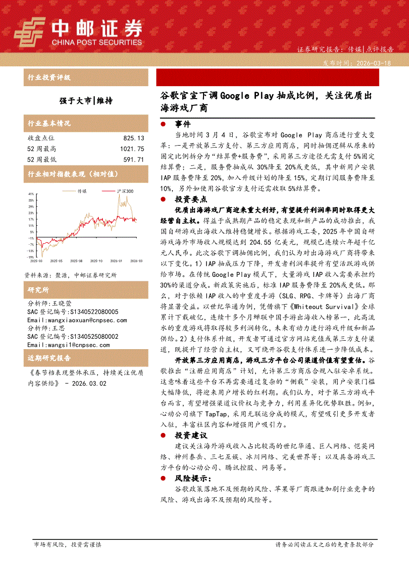 传媒行业:中邮证券-传媒行业:谷歌官宣下调Google Play抽成比例,关注优质出海游戏厂商-260318