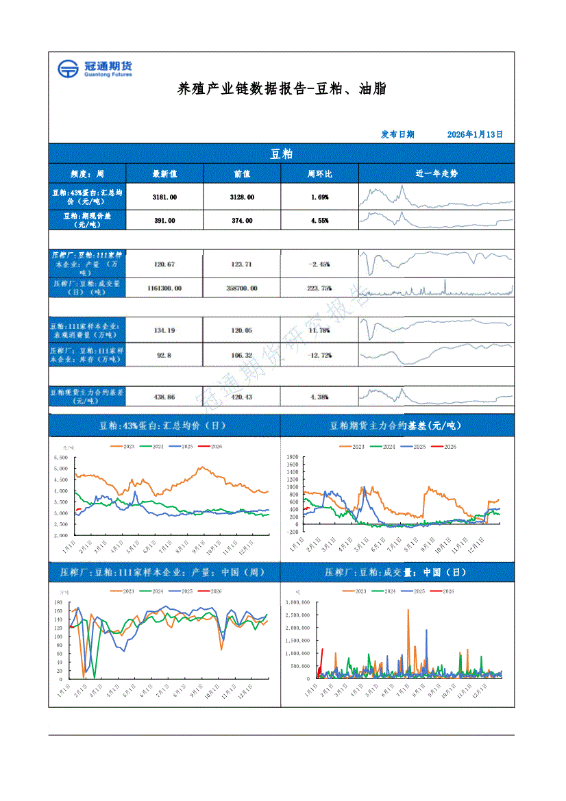冠通期货-养殖产业链数据报告~豆粕、油脂-260113