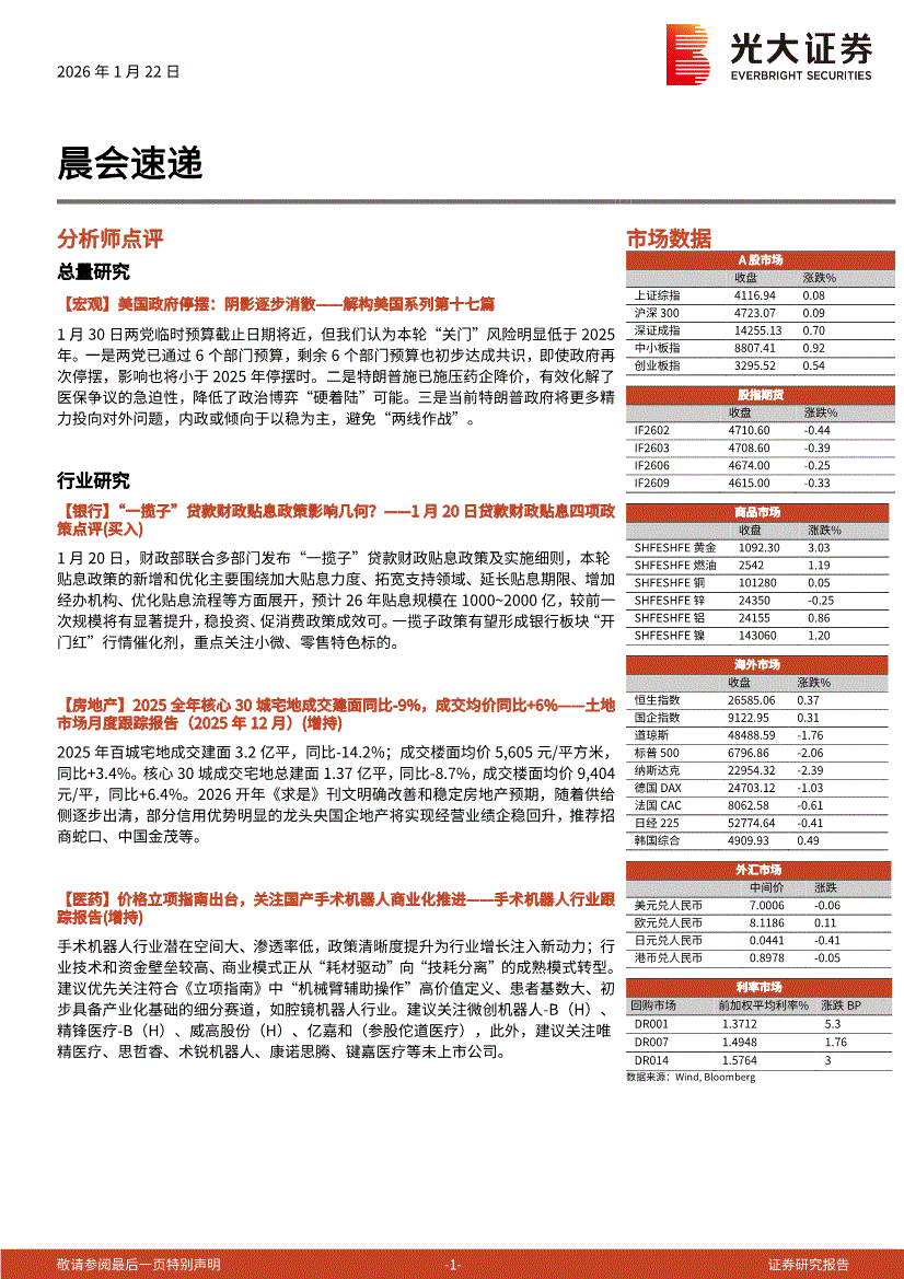 光大证券-晨会速递-260122