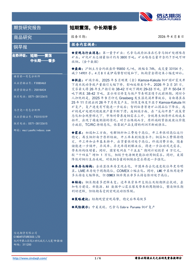 信达期货-铜早报:短期震荡,中长期看多-260408