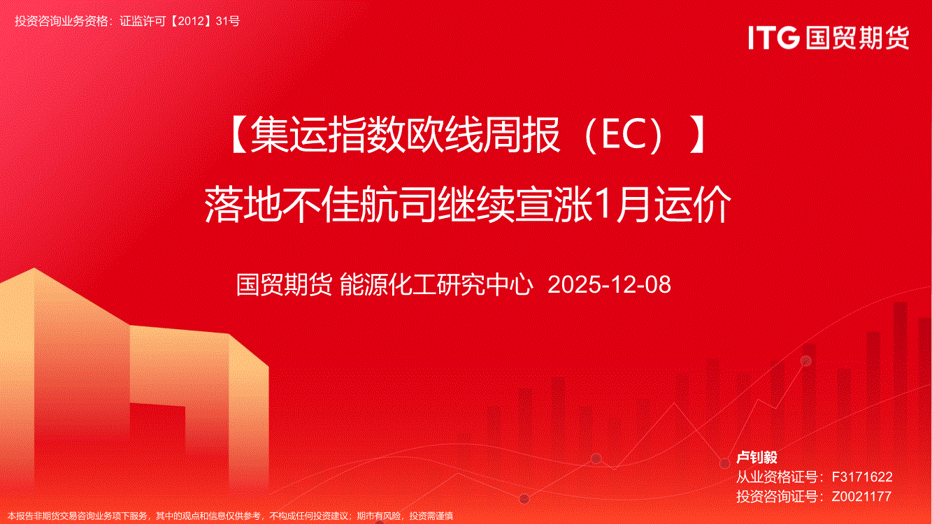 国贸期货-【集运指数欧线周报(EC)】落地不佳航司继续宣涨1月运价-251208