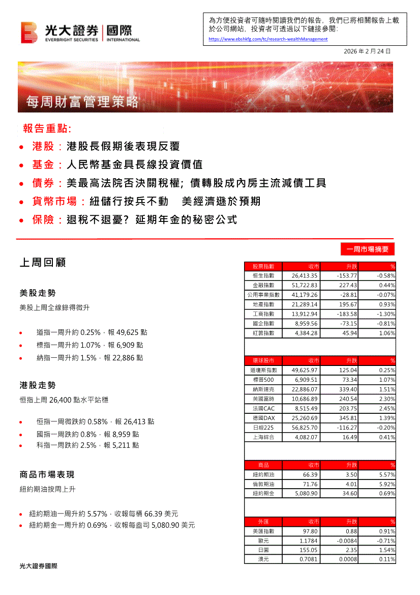 东吴证券-海外周报:春节海外市场回顾,IEEPA违法后特朗普的Plan B-260222