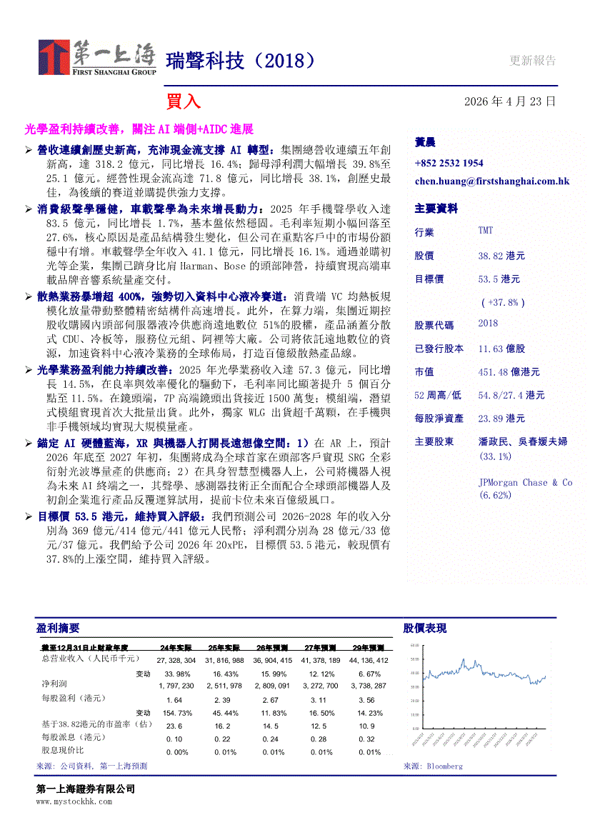 瑞声科技:第一上海-瑞声科技-2018.HK-光学盈利持续改善,关注AI端侧+AIDC进展-260423