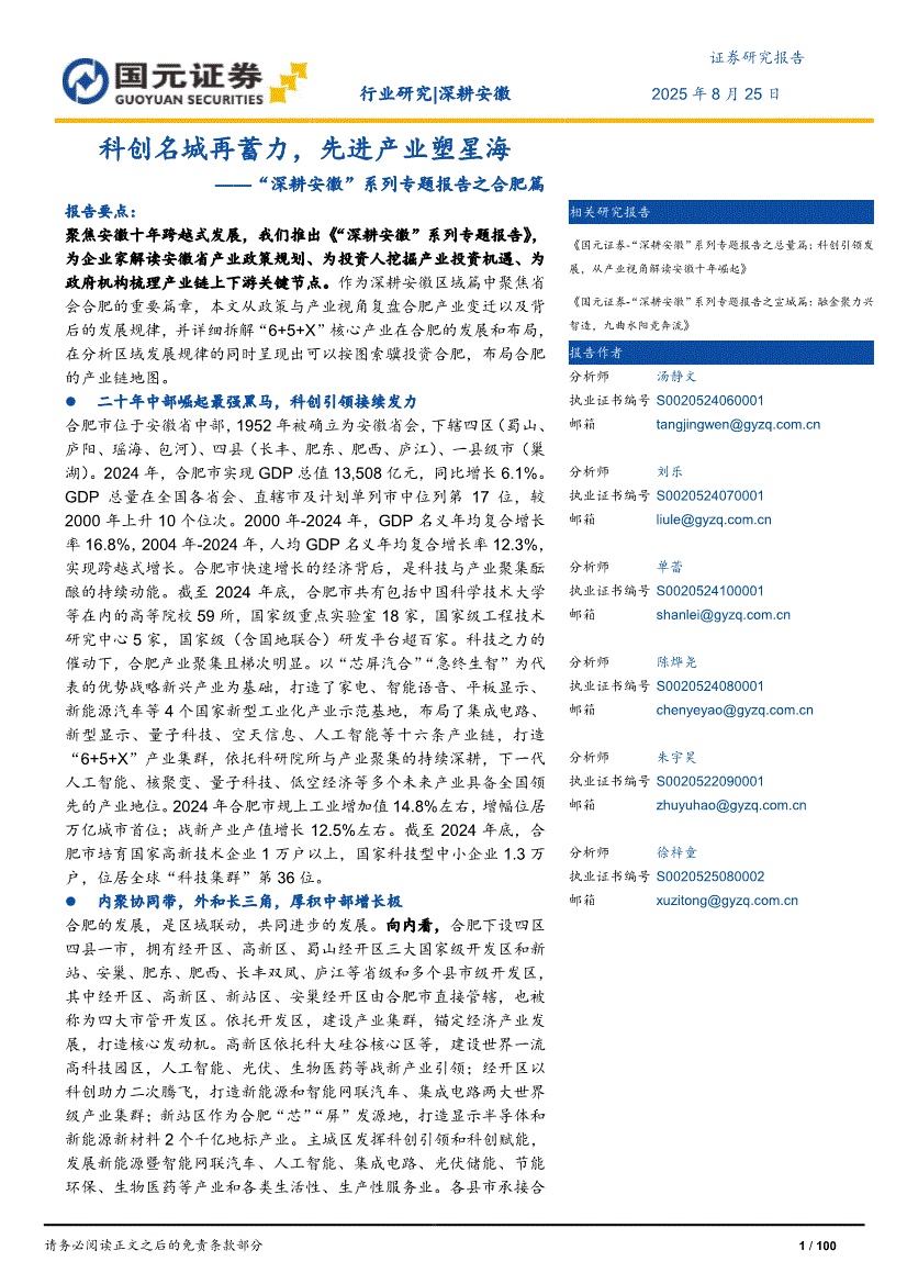 国元证券-“深耕安徽”系列专题报告之合肥篇:科创名城再蓄力,先进产业塑星海-250825