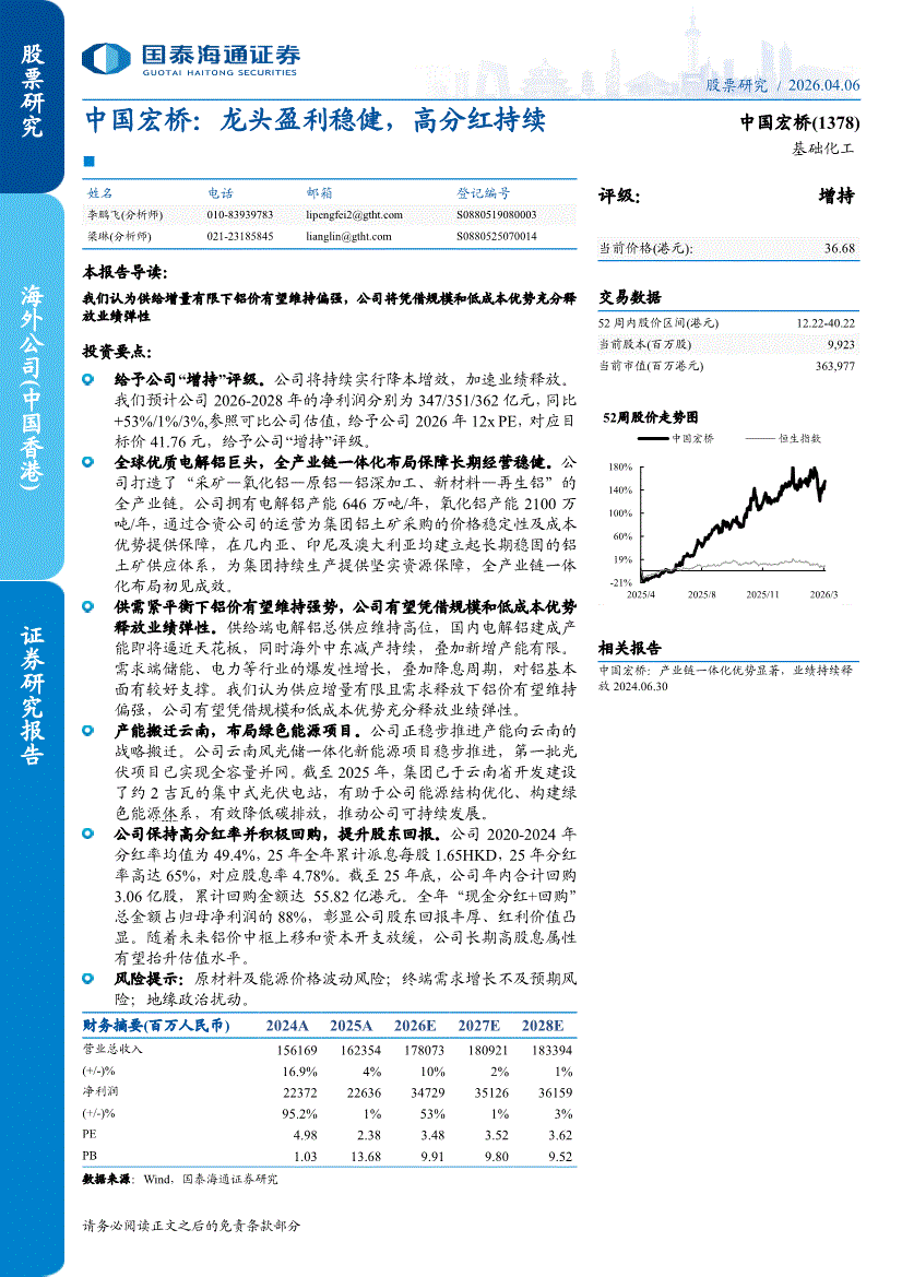 中国宏桥:国泰海通-中国宏桥-1378.HK-龙头盈利稳健,高分红持续-260406
