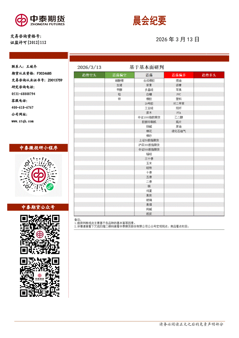 中泰期货-晨会纪要-260313