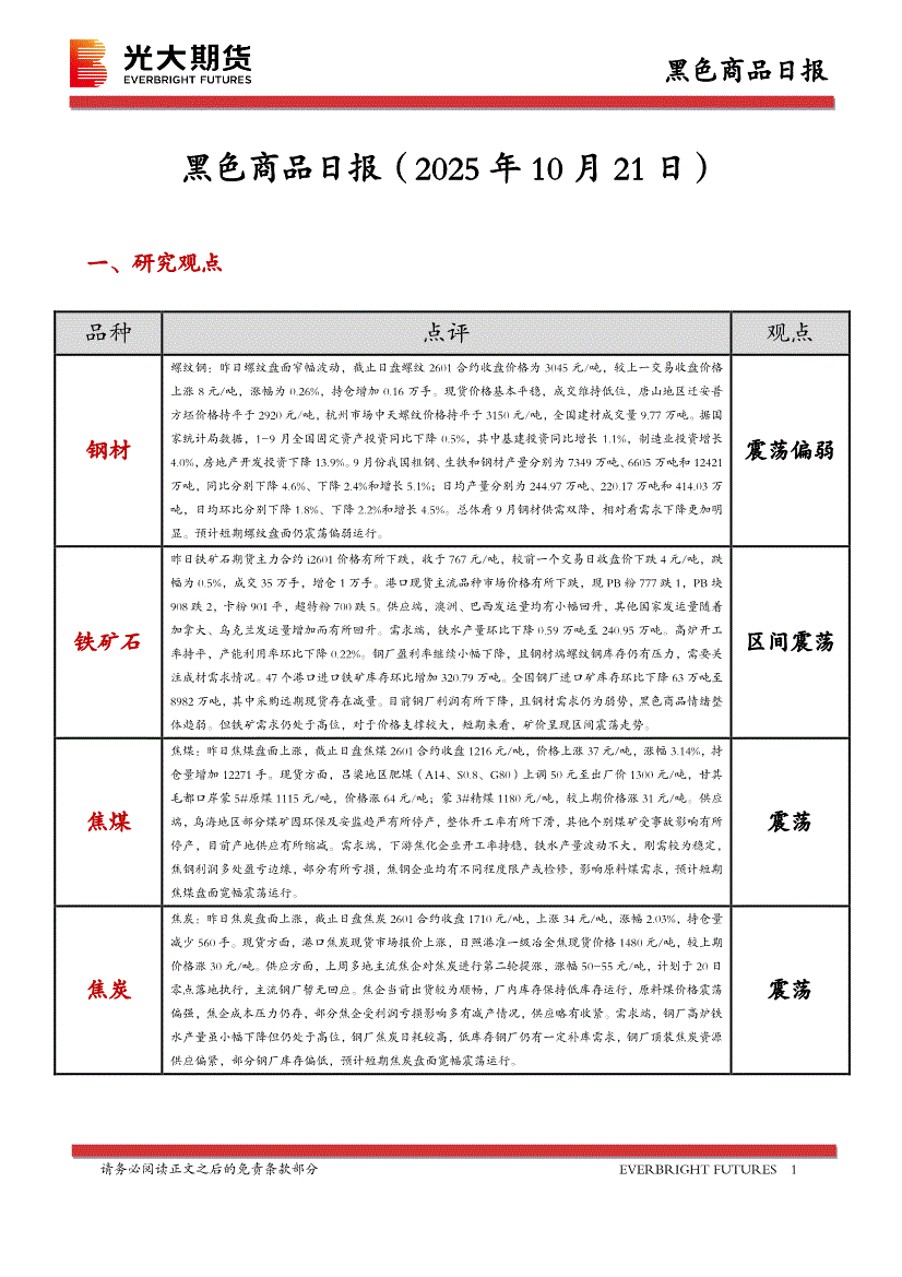 光大期货-光期黑色:铁矿石基差及价差监测日报-251016
