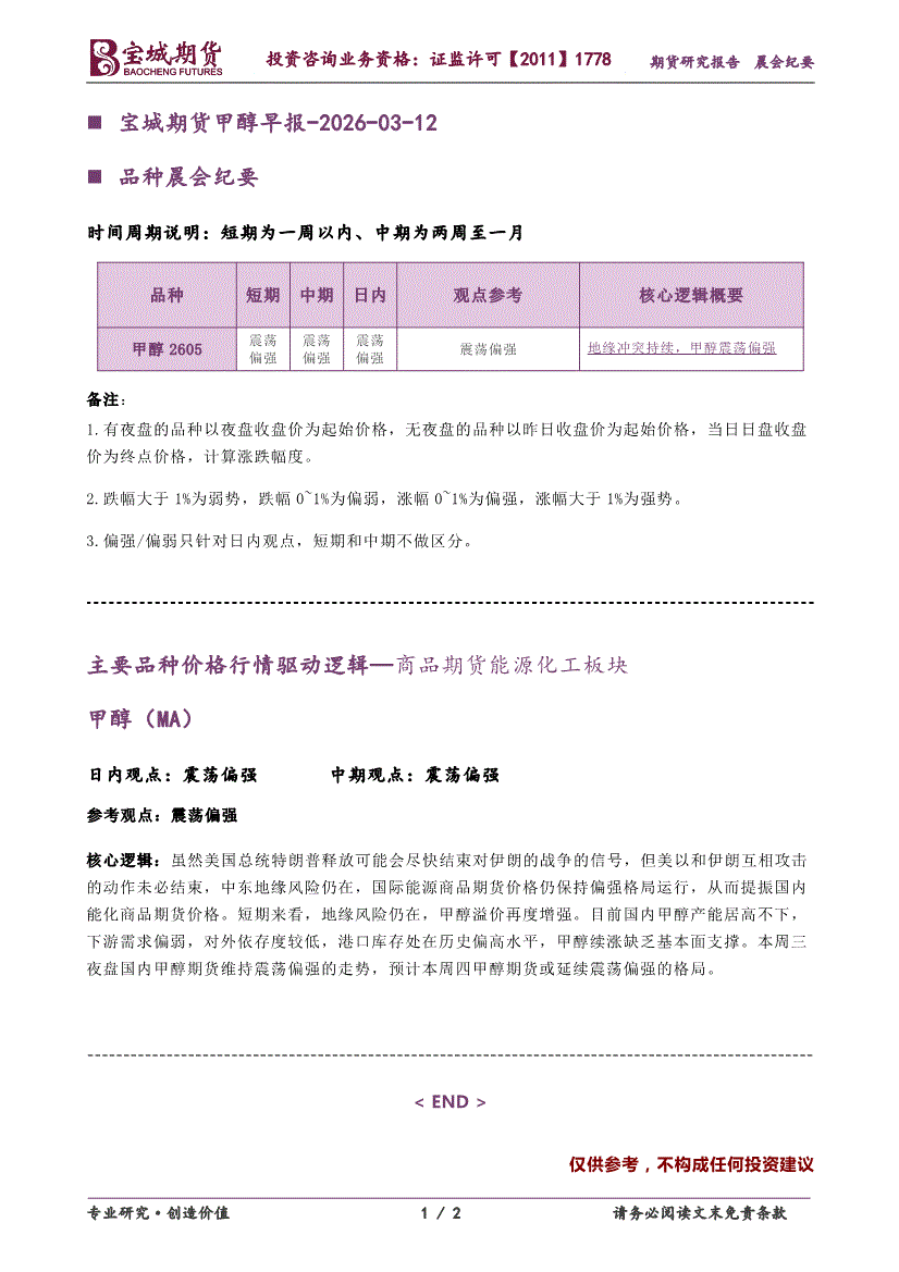 宝城期货-甲醇早报-260311