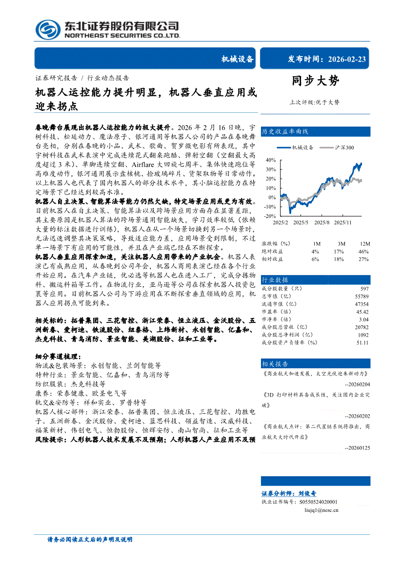机械设备行业:东北证券-机械设备行业:机器人运控能力提升明显,机器人垂直应用或迎来拐点-260223